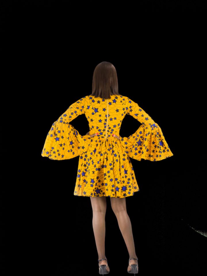 Featuring a short party dress with deep V neckline and short flare sleeve. This Beautifully and professionally crafted black African kente print dress is a must have for every fashionista, this outfit was carefully designed to fit in for all occasions so whether its casual or for a party, be sure to stand out from the crowd in this very gorgeous outfit.