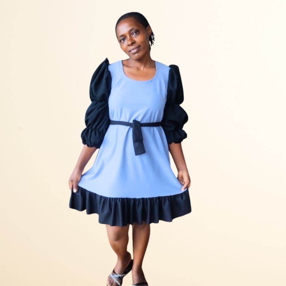 Step into elegance with our chic Shift Dress, designed to elevate your wardrobe and make a statement wherever you go. This stunning blue dress features a flattering silhouette that gracefully drapes over your figure, providing both comfort and style. The rich hue of the fabric is perfect for any occasion, whether you’re heading to a brunch with friends or a night out on the town. Paired with a sleek black jacket, this ensemble effortlessly transitions from day to night, making it a versatile addition to your collection.