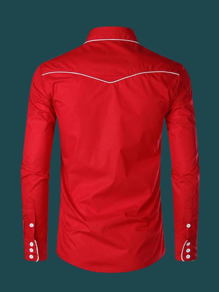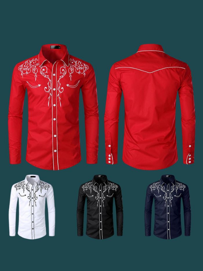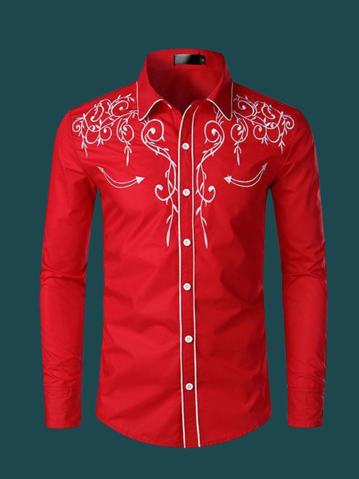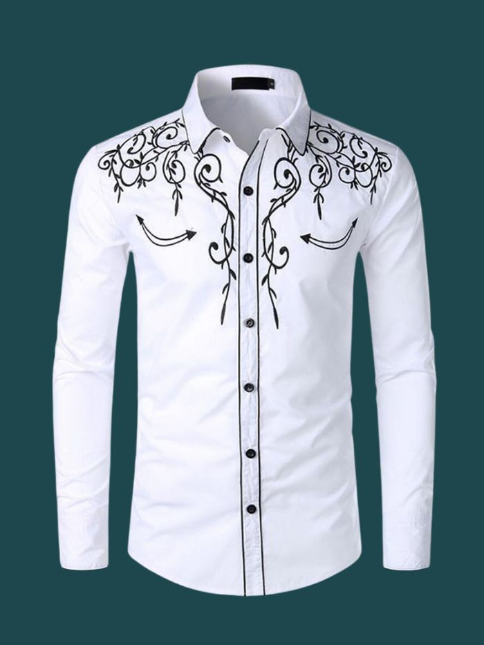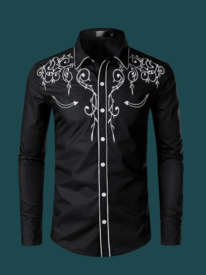 Cowboy Shirt Long Sleeve Retro Embroidery