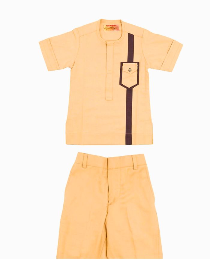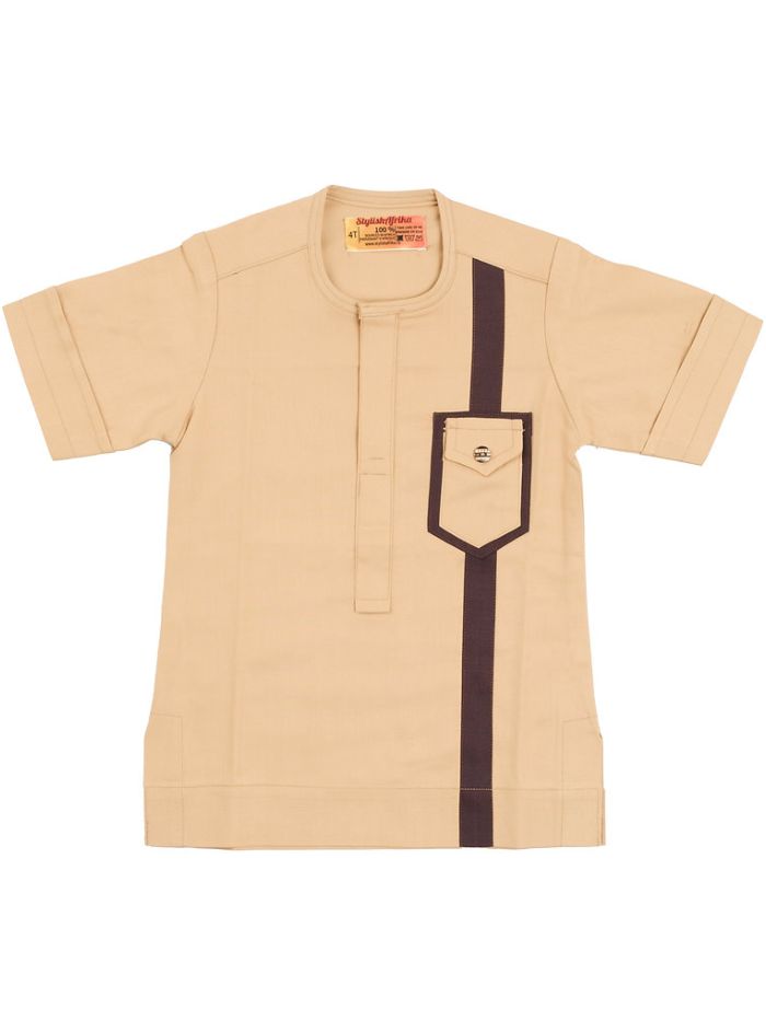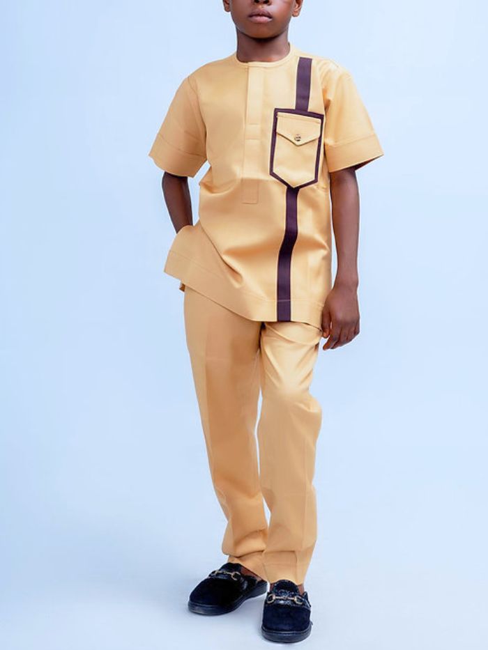 The King’s amazing 2-piece set for boys features a beige top and matching pants, embellished with a brown stripe pattern that brings a hint of sophistication to the entire ensemble. Your little one will appear charming and trendy in this African-inspired outfit that combines comfort with style. Be sure to grab this essential piece for your child’s wardrobe.