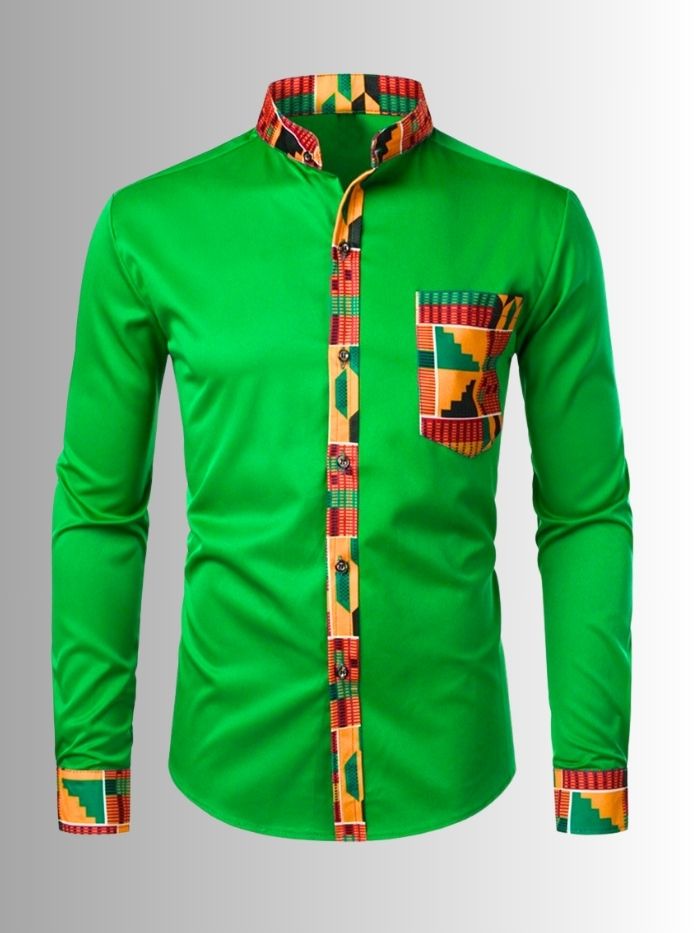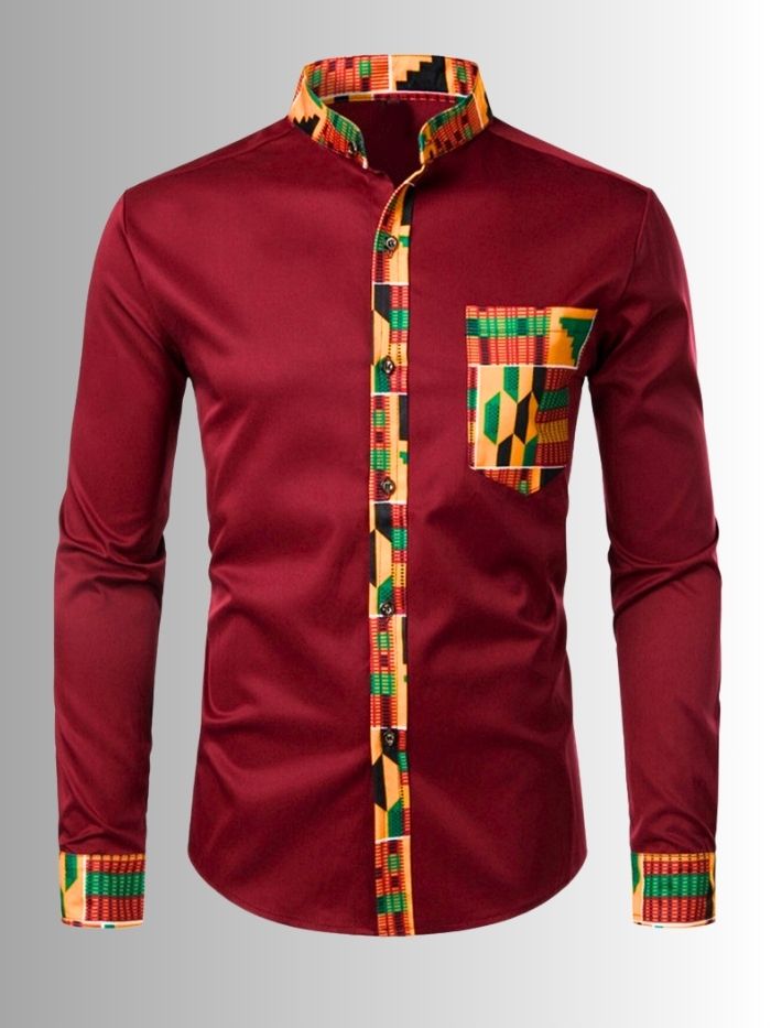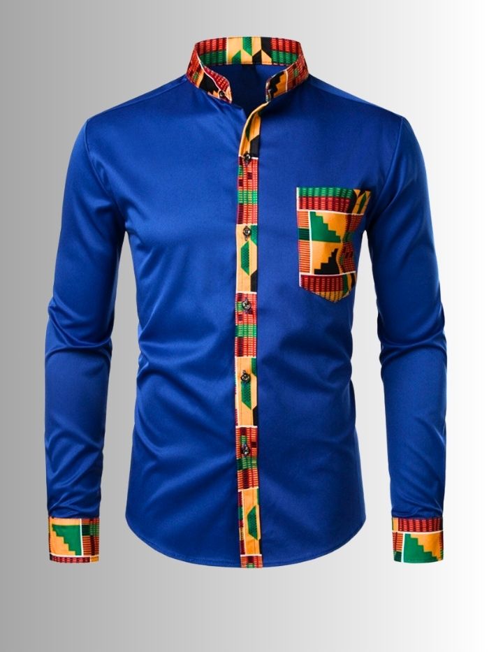 Patchwork Men’s African Long Sleeve Shirt